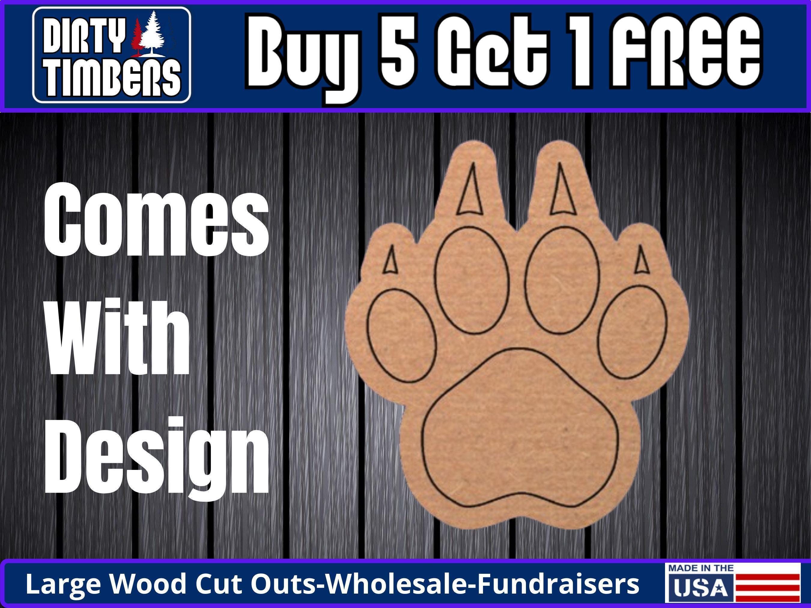 Bear Paw Print With Lines Unfinished Wood Door Hanger MDF Paint Blank Diy Kit Door Hanger Blank Wood Shape Cut Out Wood Wall Sign DT140