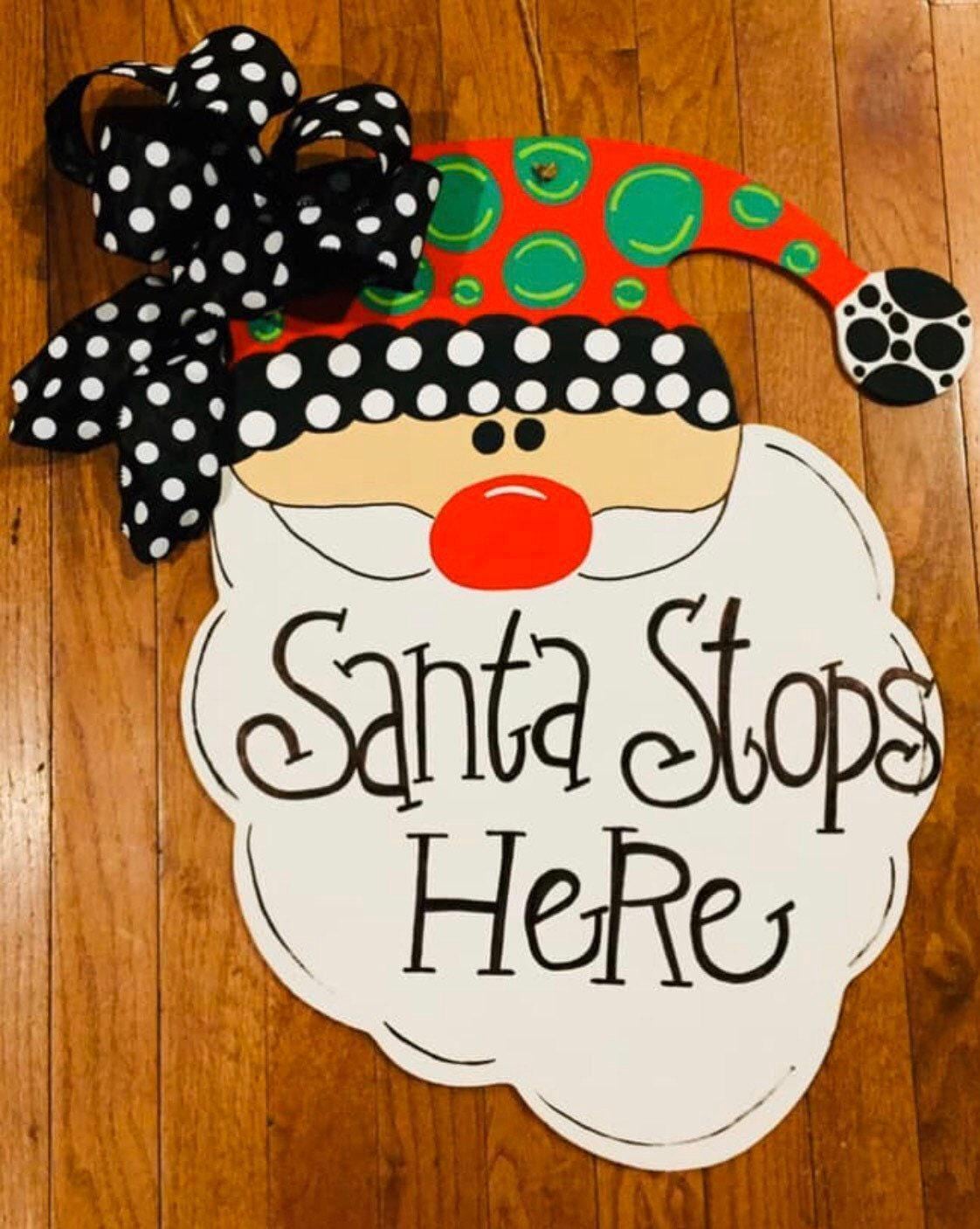 Santa Wood Sign Unfinished Wood Door Hanger MDF Paint Blank Diy Kit Door Hanger Blank Wood Shape Cut Out Wood Wall Sign Wood Door DT2059