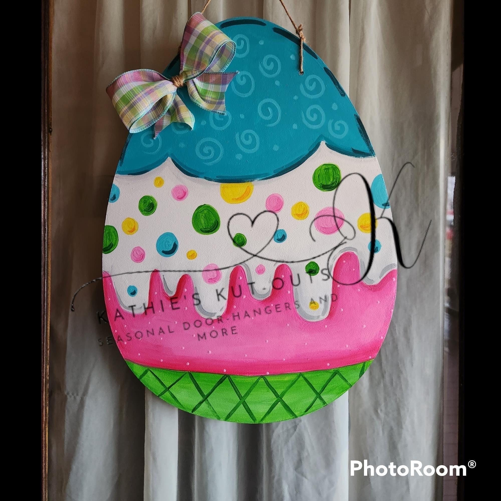 Easter Egg Unfinished Front Door Hanger Kit Diy Bunny Baby Announcement Blank Wood Cut Out Ready To Paint Custom DT2082