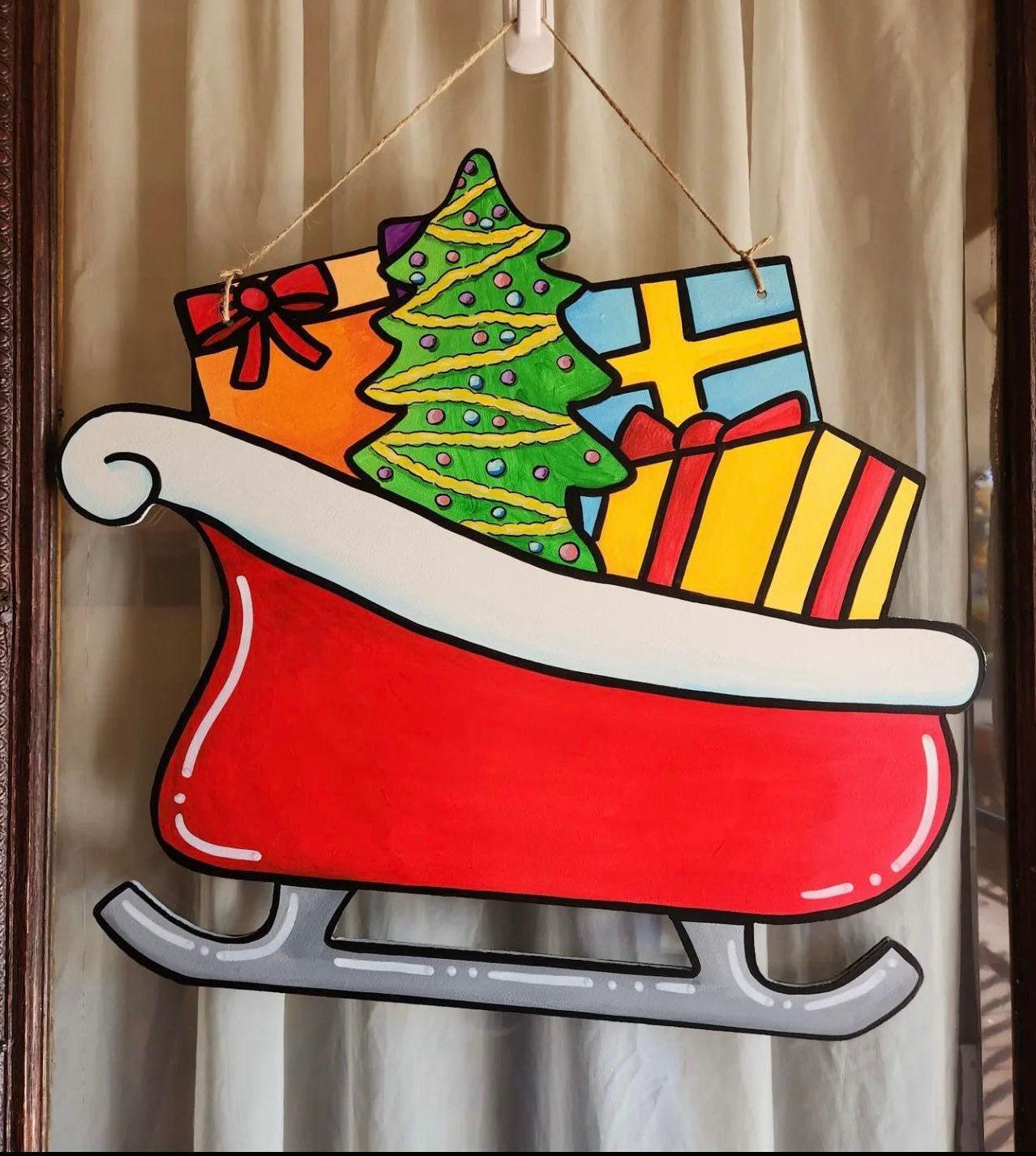 Sleigh Wood Sign Unfinished Wood Door Hanger MDF Paint Blank Diy Kit Door Hanger Blank Wood Shape Cut Out Wood Wall Sign Wood Door DT2027